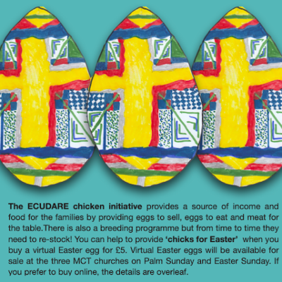 Virtual Easter Eggs will be on sale - £5 each - in all 3 MCT churches on Palm Sunday and Easter Sunday more