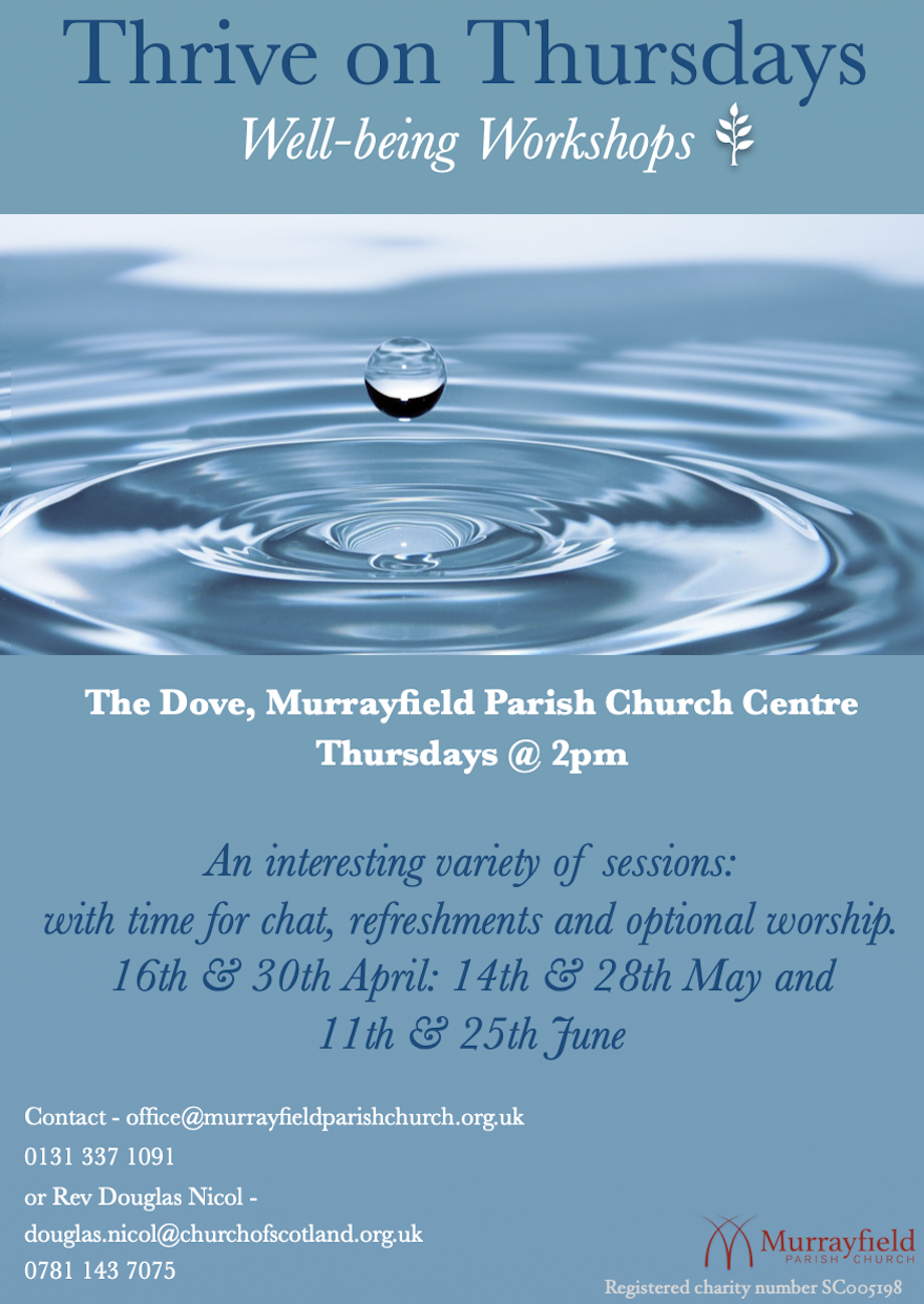 Thrive on Thursdays will be back after Easter with some exciting interesting sessions. There will be time for chat, refreshments and optional worship. Look out for details of the individual sessions in the weekly news (coming soon). Please spread the word to friends and neighbours - we would love people from the community to join in. If you would like more information please contact Rev Douglas Nicol.